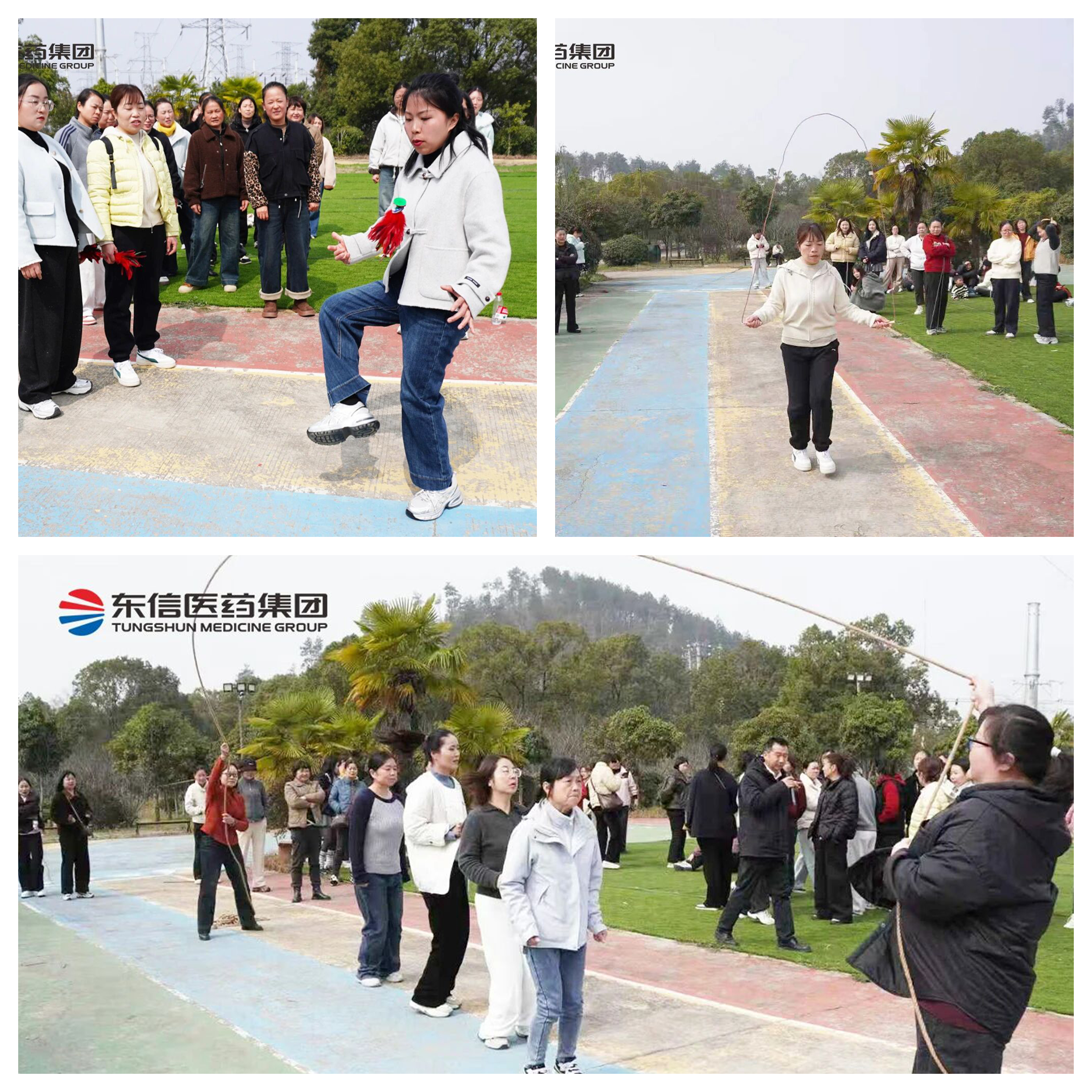 活动在欢声笑语中火热开启。单人跳绳区,选手们身姿轻盈、彩绳飞舞,展现出满满的活力与朝气;多人跳绳项目则考验着团队的默契,大家步调一致、节奏协同,每一次整齐的跳跃都是团队力量的生动体现。最扣人心弦的当属踢毽子接力赛,小小的毽子在脚尖翻飞起舞,每一次传递都凝聚着专注与协作,场上的精彩现赢得阵阵喝彩。赛场上是奋力拼搏的身影,场下是此起彼伏的呐喊助威,欢笑声交织成春日里最动人的乐章。