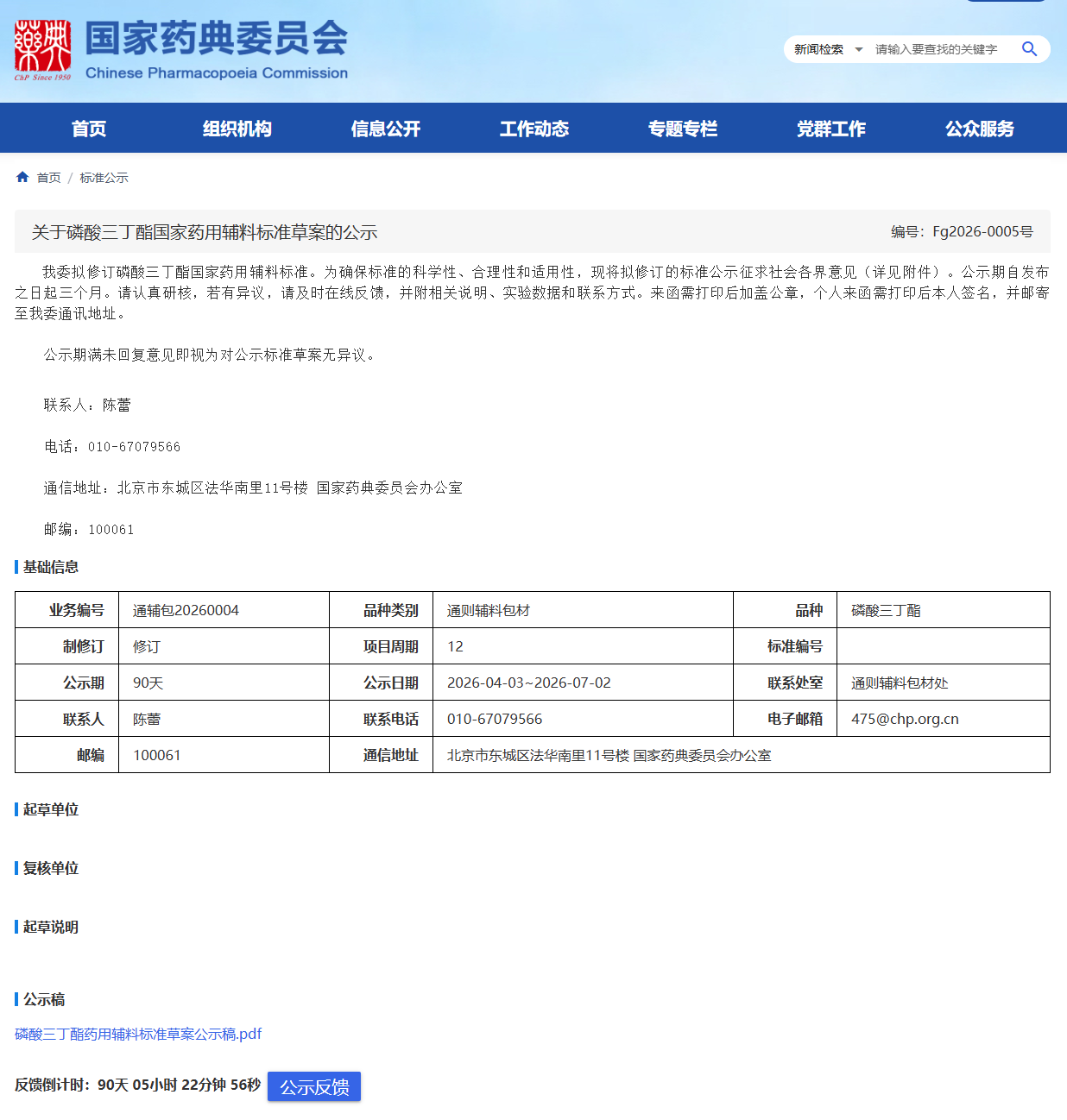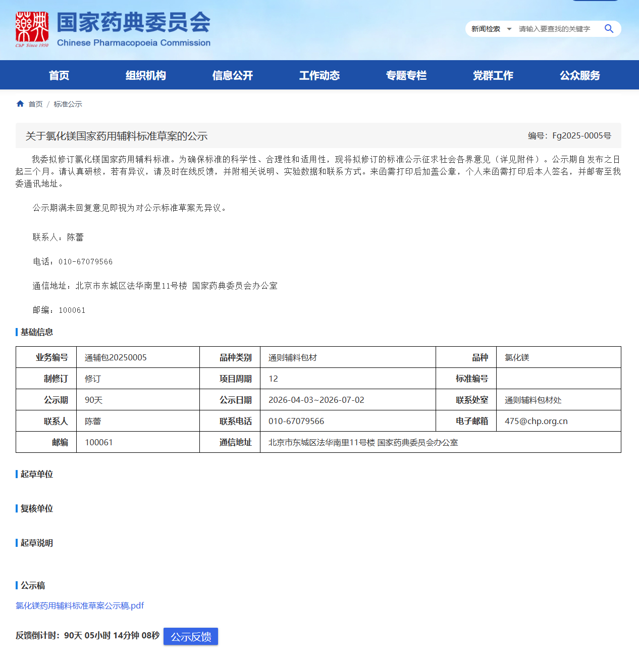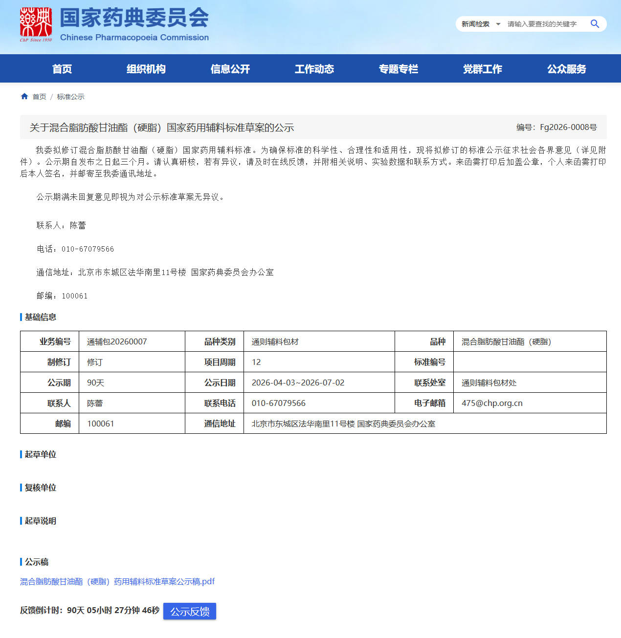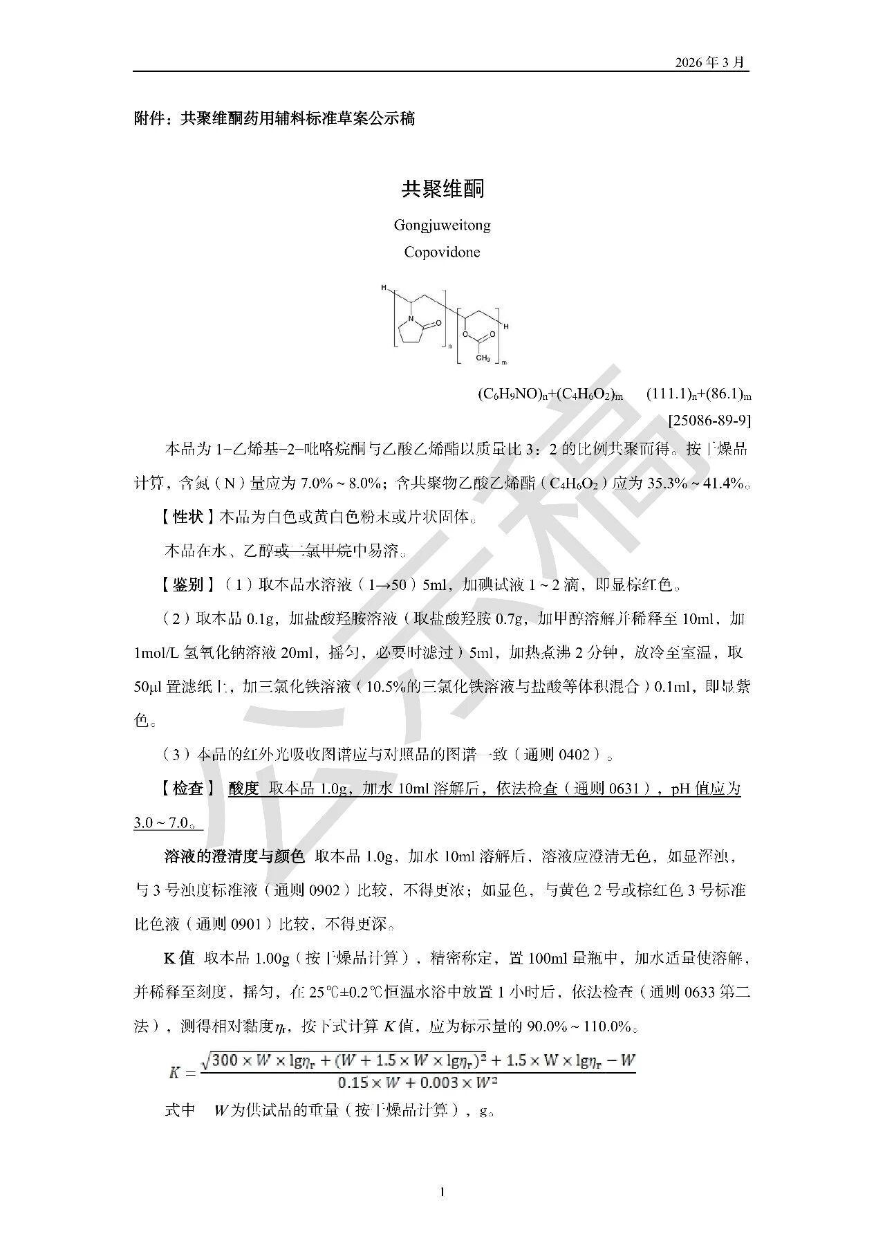 4月3日,国家药典委公示了4个药用辅料标准:混合脂肪酸甘油酯(硬脂)、磷酸三丁酯、共聚维酮、氯化镁。