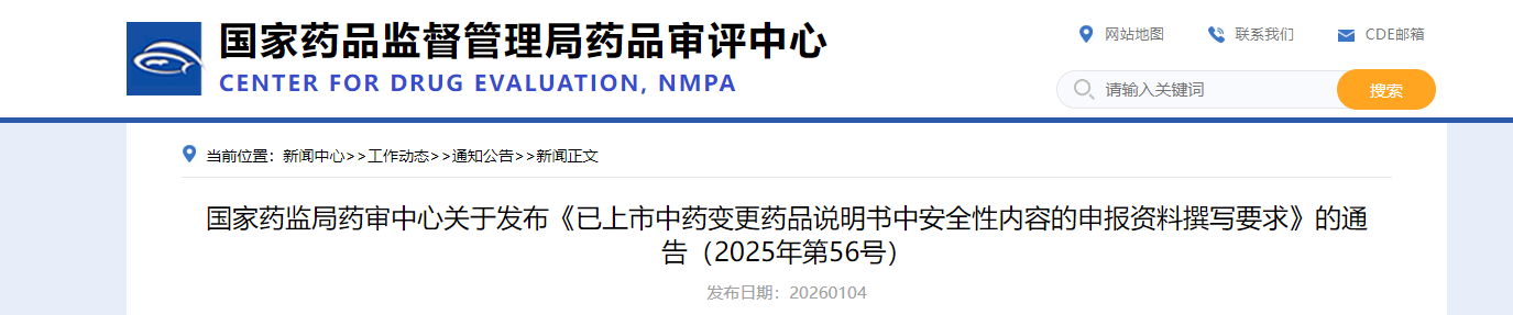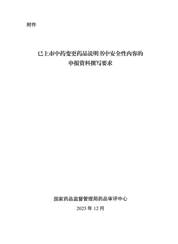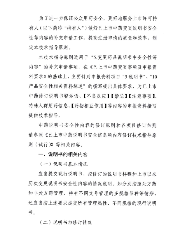 新发布|国家药监局药审中心最新发布《已上市中药变更药品说明书中安全性内容的申报资料撰写要求》